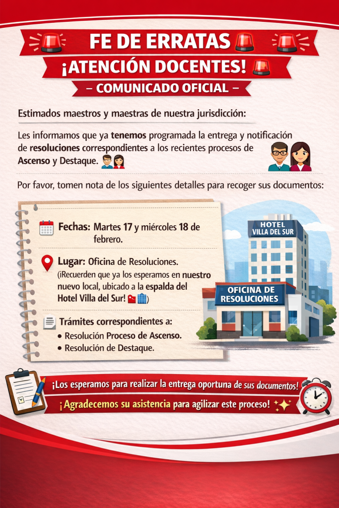 FE DE ERRATAS 🚨 ¡ATENCIÓN DOCENTES! – COMUNICADO OFICIAL 🚨