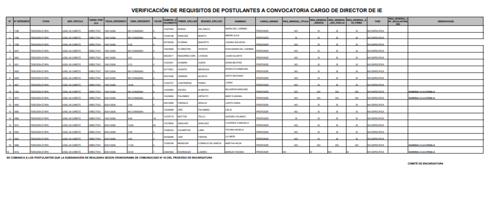 Verificación de requisitos del proceso de encargatura para cargo de director de IE