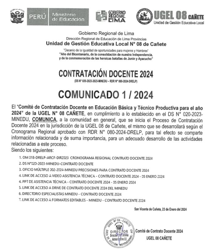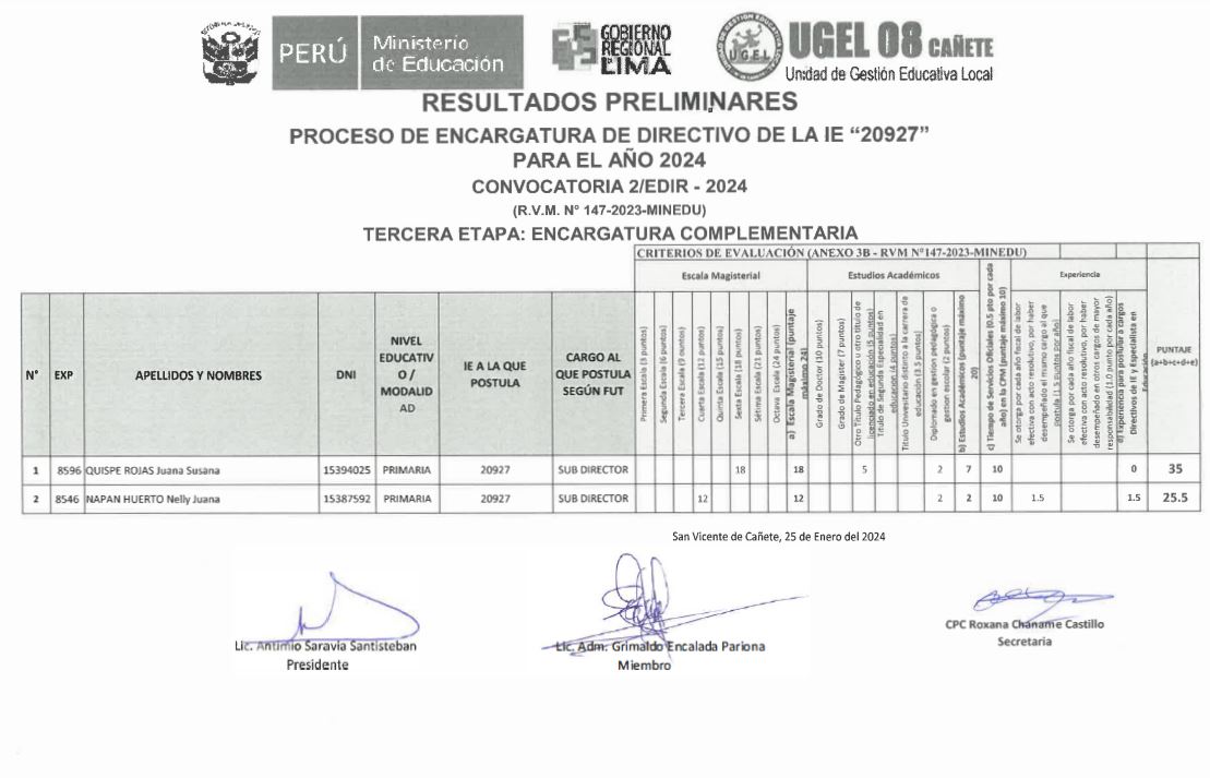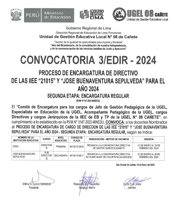Jue, 25 de enero, 2024 San Vicente Cañete.PROCESO DE ENCARGATURA DE DIRECTIVO DE LA IEP «20927» PARA EL AÑO 2024 Descargar resultados: https://drive.google.com/file/d/1kelWsXu_quMYMds8rb6d9xRUXxG1dkUB/view?usp=sharing