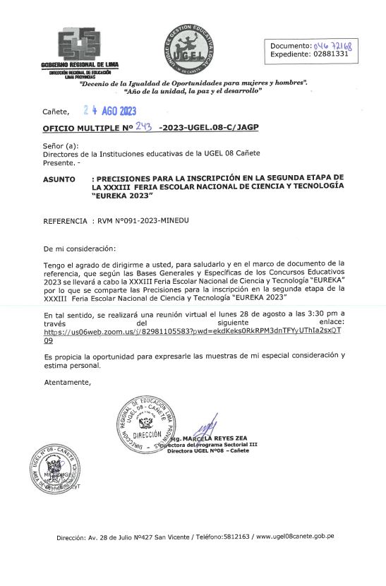 PRECISIONES PARA LA INSCRIPCIÓN EN LA SEGUNDA ETAPA DE LA XXXIII FERIA ESCOLAR NACIONAL DE CIENCIA Y TECNOLOGÍA “EUREKA 2023”