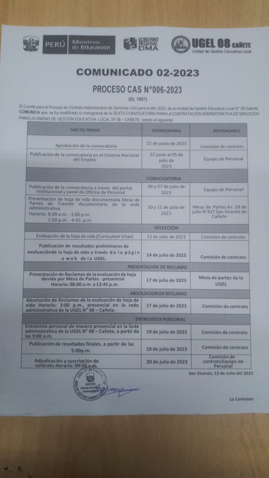 Vie, 21 de julio, 2023 San Vicente Cañete.https://drive.google.com/file/d/13hphfc4VkSA7GDuluMpbXt4lBRpxonUh/view?usp=sharing
