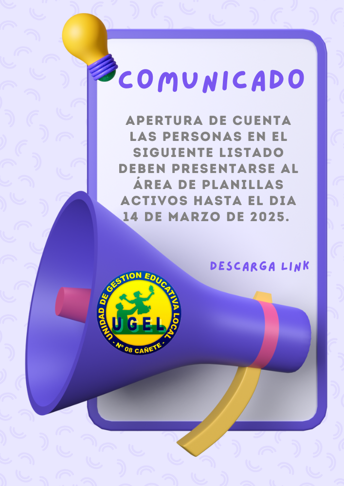 Apertura de Cuenta: Las personas en el siguiente listado deben presentarse al Área de Planillas Activos hasta el dia 14 de marzo de 2025.
