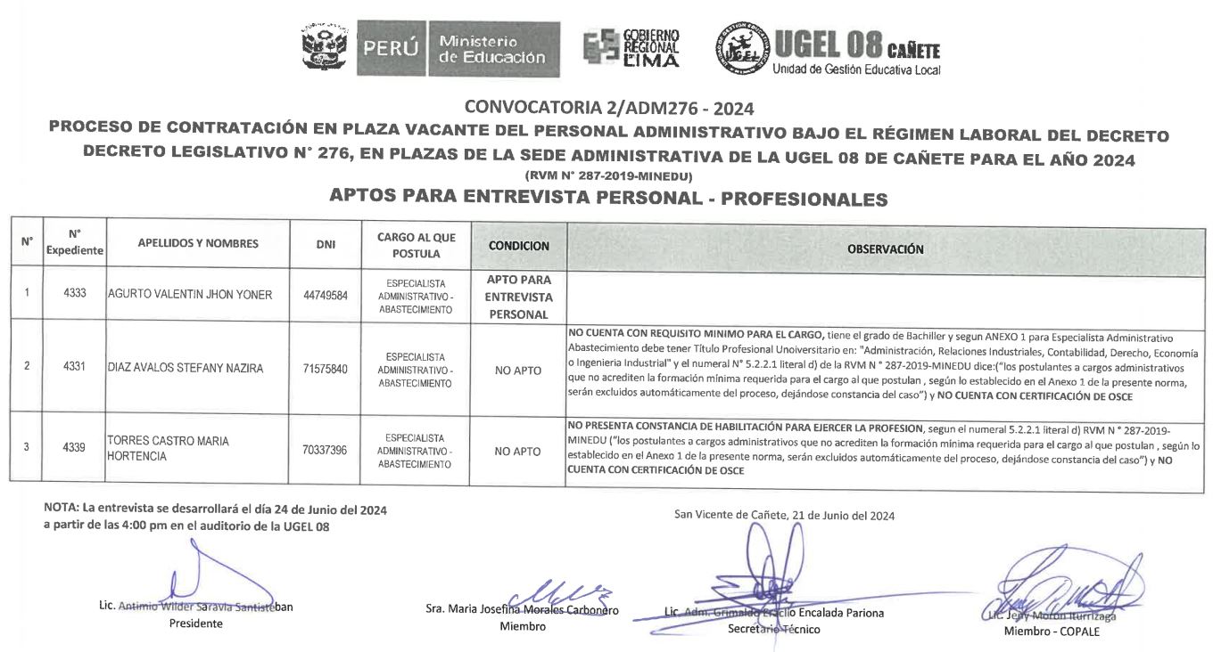 Vie, 21 de junio, 2024 San Vicente Cañete.PROCESO DE CONTRATACIÓN EN LA PLAZA VACANTE DEL PERSONAL ADMINISTRATIVO BAJO EL REGIMEN LABORAL DEL DECRETO LEGISLATIVO 276.