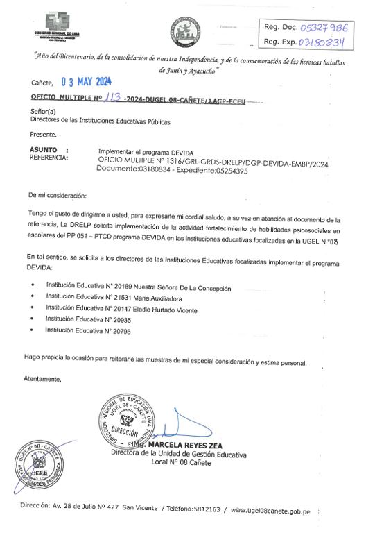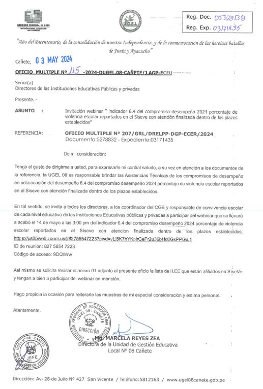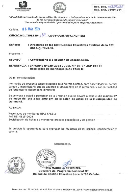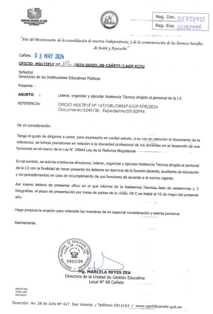 OFICIO MÚLTIPLE N° 120-2024-UGEL 08-C/AGP-EEI